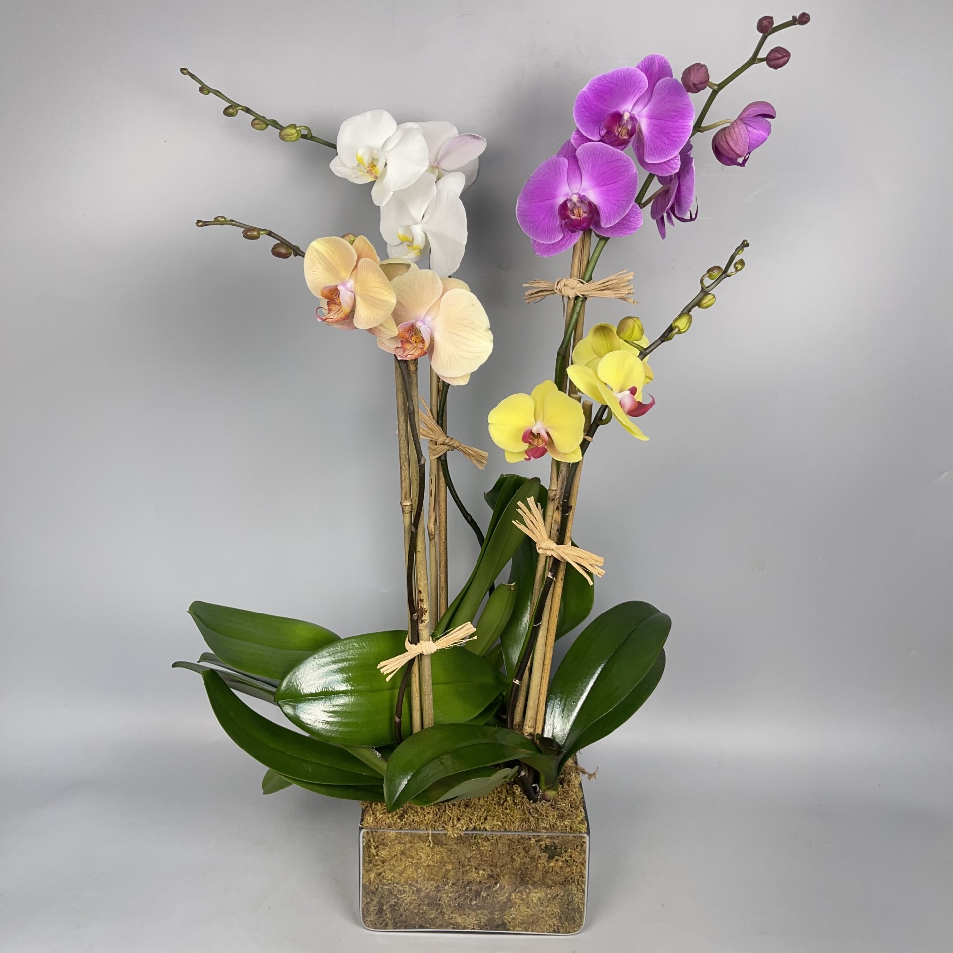 #147 Jardín de orquídeas Phalaenopsis multicolor en base de cristal