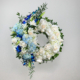#153 Diseño fúnebre en forma de cruz preparada con Rosas, Hortensia y detalle de Lily Grass.