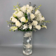 #223 Moderno diseño con 3 docenas de Rosas, delicadamente conectadas con Calla mini y un jardín elaborado con flores de Orquídea Cymbidium en base de cerámica plateada.