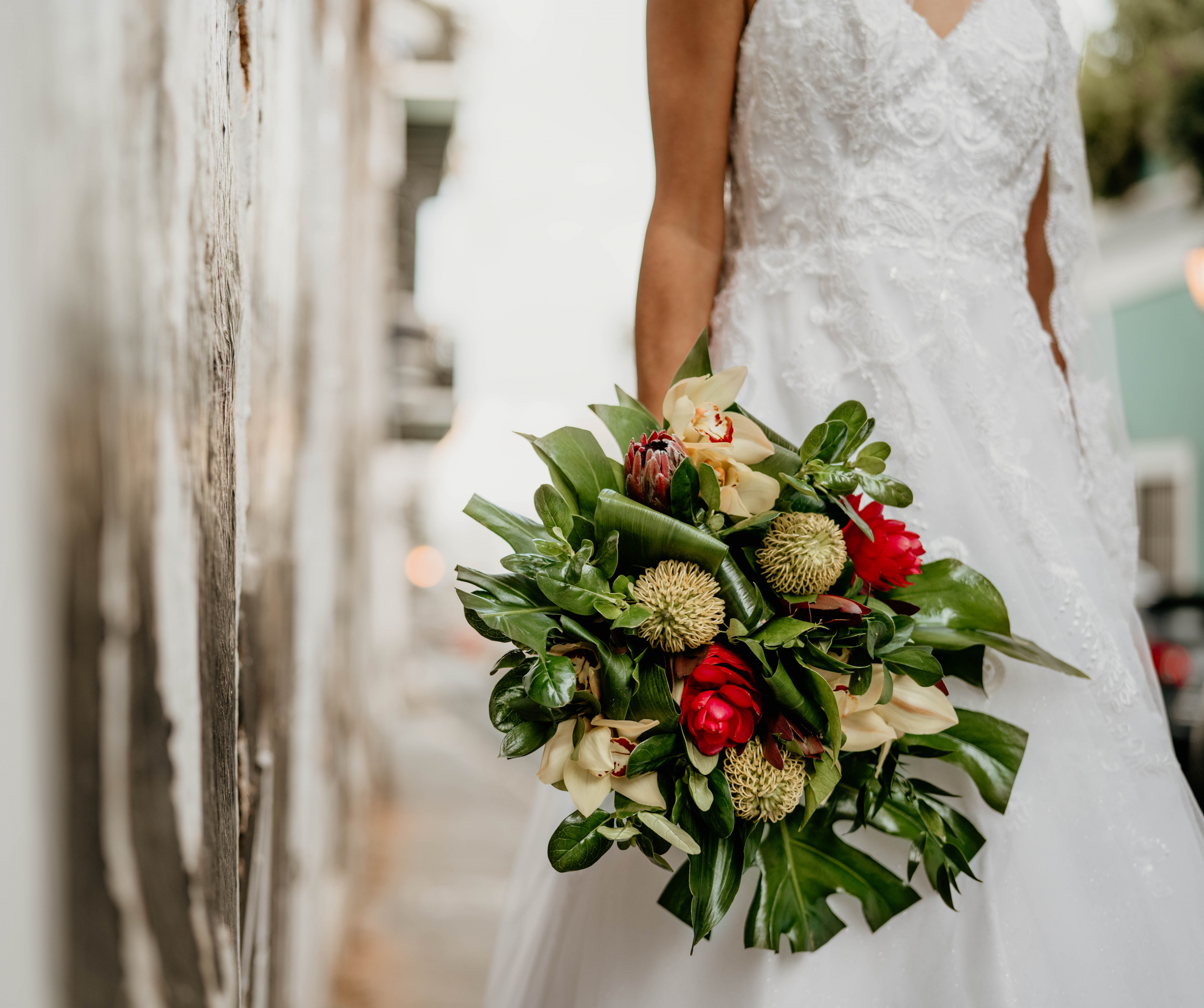 #581 Bouttoniere de novio elaborado a partir de pétalos de Ginger con hilo dorado.