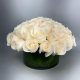 #52 Delicado y elegante diseño elaborado con dos docenas de Rosa, Hortensia, Hypericum, Eryngium, Rosa mini y Eucalipto. Embellecido con follaje de temporada en base de cerámica negra.