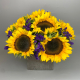 #71 Llamativo diseño con 12 Rosas, Girasoles y Tulipanes en base de cerámica.