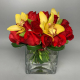 Este diseño esta compuesto por un arreglo superior en rosas fucsia y orquídeas de cymbidium blanco y un arreglo en la parte inferior de 2 flores de cymbidium delicadamente enlazadas con alambre fucsia. Elegancia, glamour y pureza simbolizan la esencia de lo quiere transmitir !!