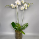 #110 Un diseño donde el elemento principal es la belleza de la Orquídea Phalaenopsis con toques de Pussy Willow y presentada en una base de cristal.